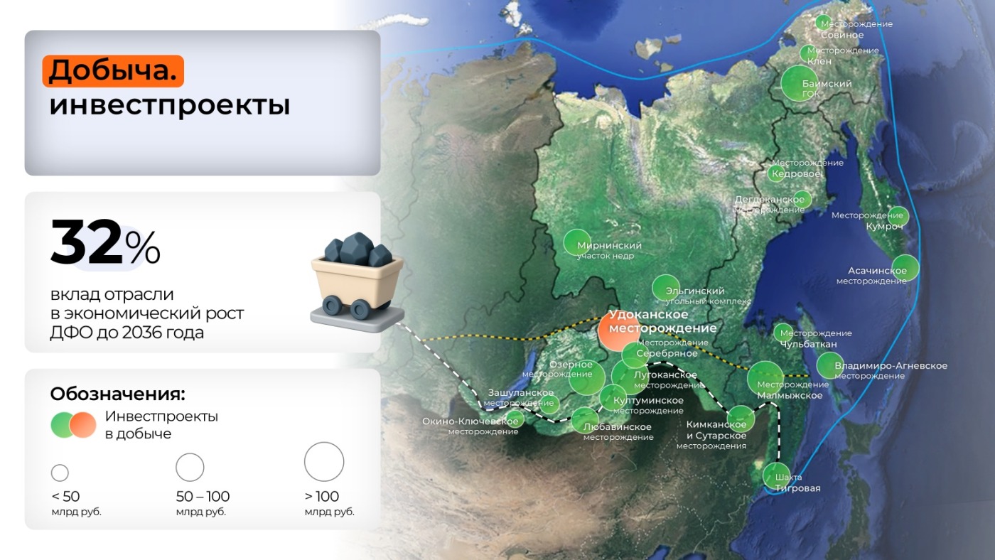 Ожидается, что вклад от добычи полезных ископаемых в экономический рост ДФО до 2036 года составит 32%.
