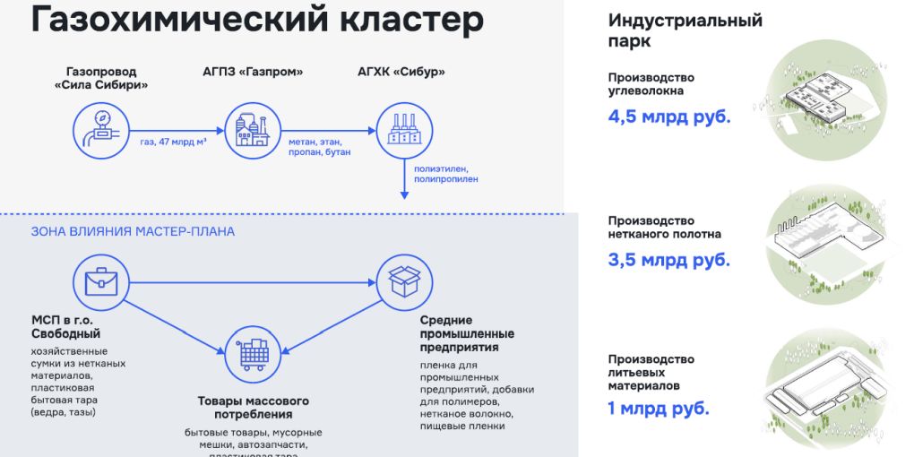В рамках масштабной реновации проходит и газификация города. На экологичное топливо переводят котельные, жилые дома, автомобили. Планируется, что к концу следующего года весь общественный транспорт Свободного будет работать на газе. А главное: к 2030-му город должен стать центром газохимического кластера. При этом предприятия в создающемся индустриальном парке будут перерабатывать продукцию газоперерабатывающего завода и газохимического комплекса.