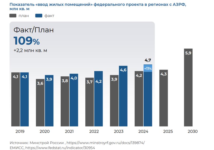 В 2024 году в регионах с АЗРФ ввели жилья на 11% больше, чем планировали.