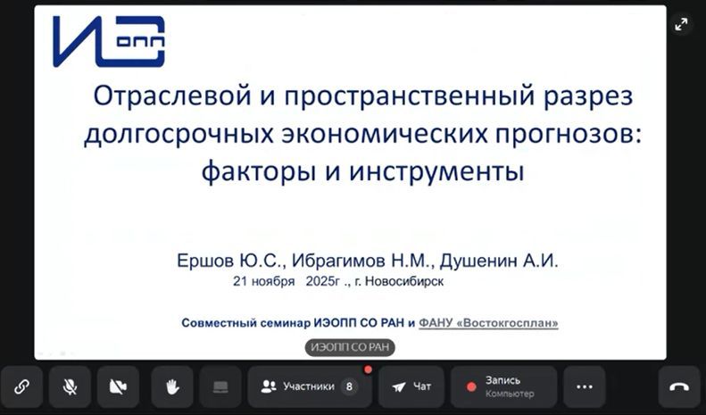 Восточный центр государственного планирования и Институт экономики и организации промышленного производства Сибирского отделения РАН провели совместный семинар на тему «Регионализация межотраслевых балансов».