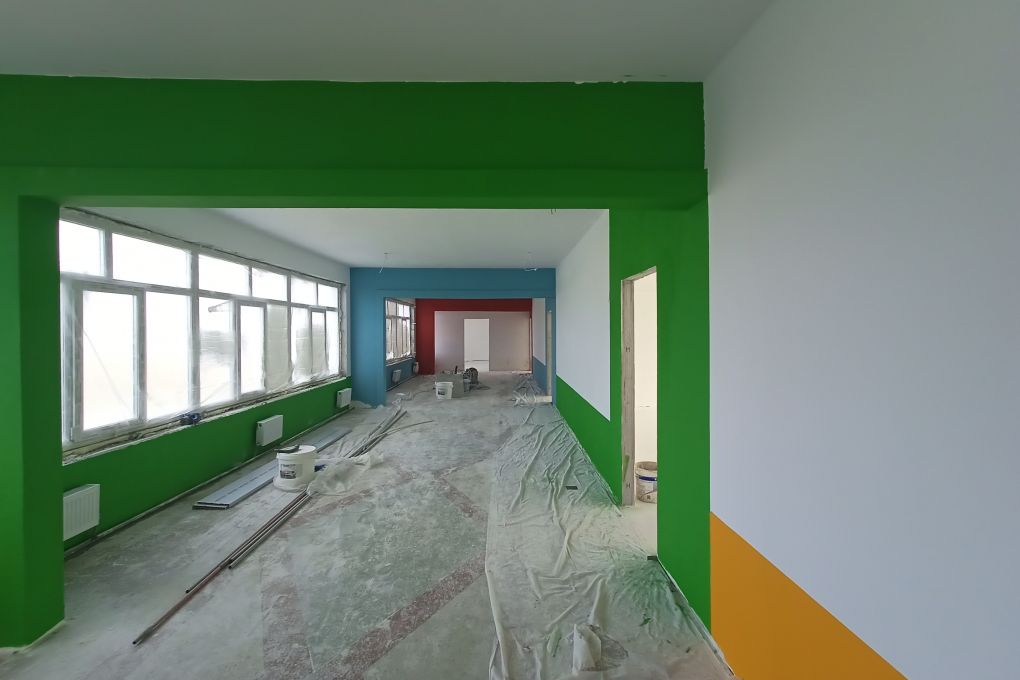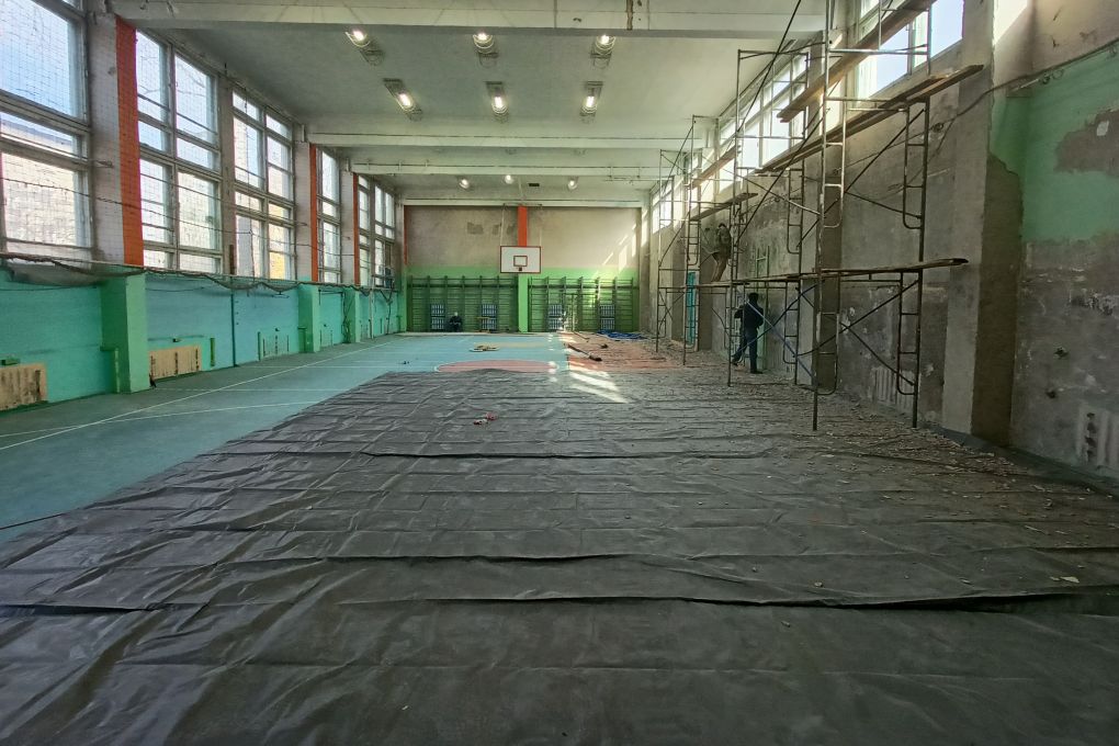 Продолжается ремонт лицея №23. Это школа с этнокультурным компонентом, единственное подобное учреждение образования в области. Здесь уже полностью обновили электропроводку, а деревянные окна заменили на пластиковые. Сейчас укладывают новую плитку в туалетных комнатах и новые покрытия на полы в классах, красят стены, устанавливают перегородки.